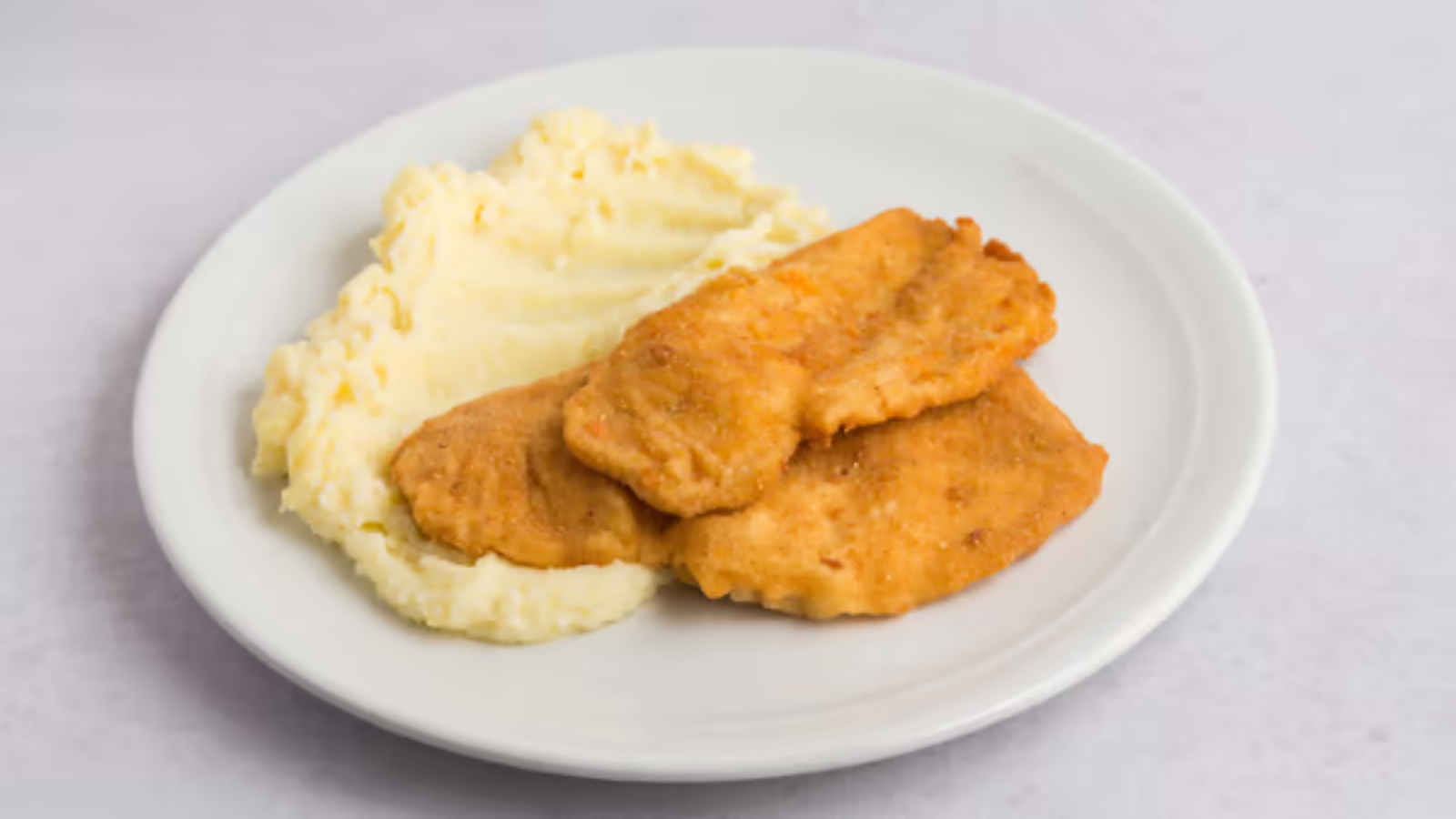 pohovano pileće belo meso 150gr i pire krompir 150gr