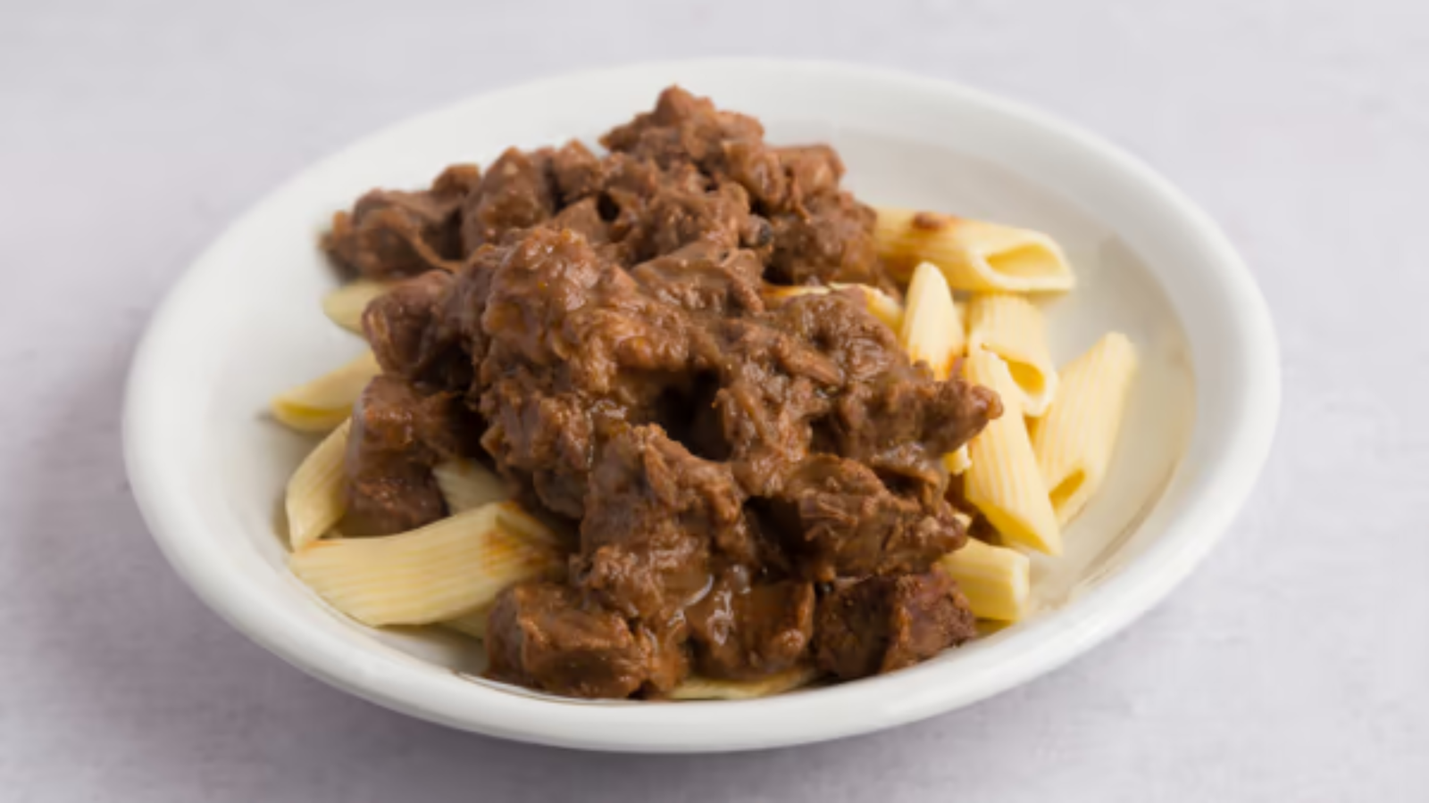 porcija od 350 gr, juneće meso 150gr i 200gr testenine